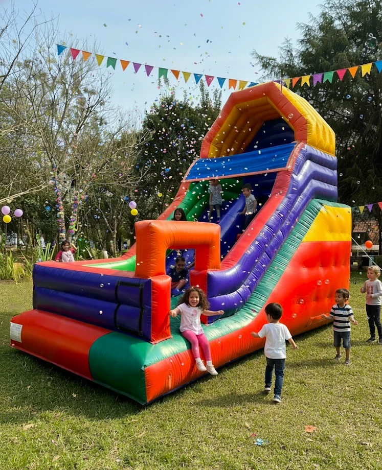"O Tobogã foi a atração principal da festa! Chegaram na hora, montaram rápido e o brinquedo estava impecável. Super recomendo!"